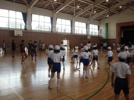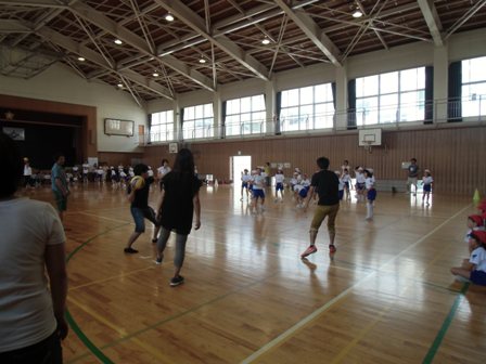 おうちの人と一緒にドッチボール大会をしました。赤白対決だけでなく親子対決もあり、大盛り上がりの大会になりました。