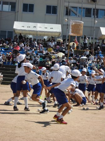 玉入れでは、1つでも多く入れたい!という気持ちで、最後まであきらめず籠を目がけて投げ続けました。どのように投げれば入るのか、考えながら練習しました。