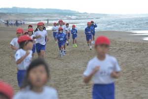 2年生がスタートする頃には、ポツポツと雨が降ってきていましたが、みんな一生懸命あきらめずに走り、ゴールすることができました。ゴールしたあとのお顔は、あきらめずに走りきった自信たっぷりの素敵なお顔でした。また一回り大きくなった2年生です。