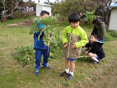 9月に植えた大根の収穫をしました。土の中から見えていた大根。もうすぐ収穫できそうだね、と楽しみにしていました。