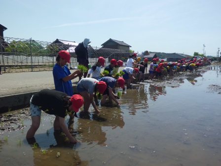 当日は、晴天に恵まれ、とても楽しく体験ができました。田んぼに足を入れた感触や苦労して植えた経験を学習や生活に生かしてくれることを願っています。次回は9月の稲刈りを体験する予定です。