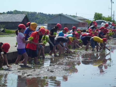 かほく市狩鹿野にある渡辺さんの田んぼの一画を貸して頂きました。社会科で米作りの学習の一環として実際に植える段階を実際に経験することを通して、農家の人の苦労や努力、おいしいお米が食べられる幸せに感謝する気持ちを育てられたらと思いました。