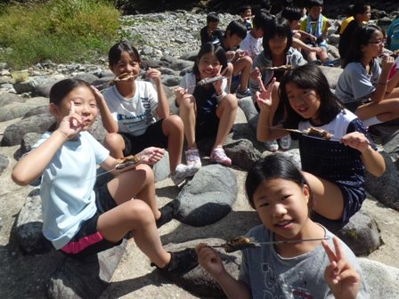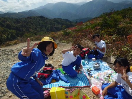 さて、9月28、29日に5年生宿泊体験学習で白山ろく少年自然の家に行ってきました。主な活動は、三方岩岳登山、きもだめし、イワナつかみでした。9月に入って一番ともいえる最高の天候に恵まれ、子供たちは、学校では学べない自然体験や、本物体験をすることができました。