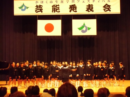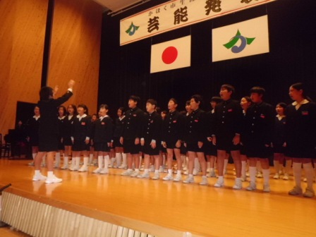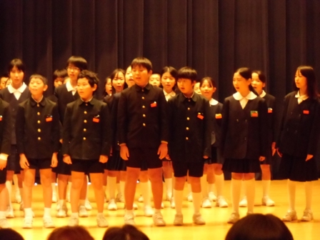 10月31日(土)に河北台中学校の講堂にて、5年生が合唱を披露してくれました。約3週間前から朝練習や音楽の授業中で練習をしてきました。音楽会での大成功から約半年がたちましたが、その歌声はさらにパワーアップ!!そして、高学年らしい高音の響きと強弱をつけた歌声へとレベルアップして、最高の合唱となりました。この経験を、3学期の6年生を送る会や卒業式につなげていきたいと思います!