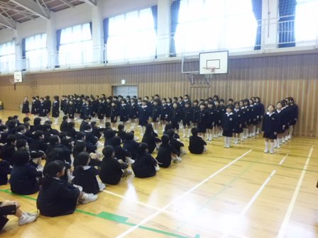 詩は、国語の教科書にある「ふるさと」といきものがかりの「心の花を咲かせよう」、そして、今年1年の抱負を熱く、そして、堂々と披露していました。3クラスに分かれているとあって、なかなか出だしの言葉がそろわないなど、苦労もしましたが、持ち前の”底力”を発揮し、今後の音読発表の土台を占めしてくれました。学級代表が進んで前に出て、子供たちだけで頑張ろうとする意識の変化が見られ、最高の収穫になった全校集会でした。集会後には時間がなく感想がいえなかったこともあり、6年生と4年生が教室に来て感想を伝えてくれました。「人数が多いのに揃っていて大きな声ですごかった」という声が多かったです。一生懸命さが相手の気持ちを動かすことを学べた良い機会になってと思います。しかし、学年としての課題も見えた集会でもあり、次回の音楽会に向け、一丸となって頑張っていきたいと思います。