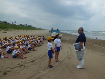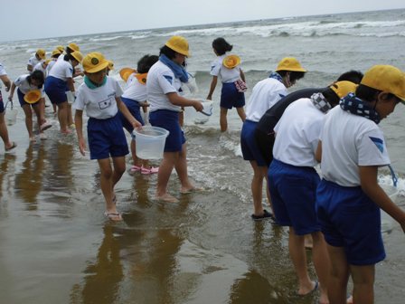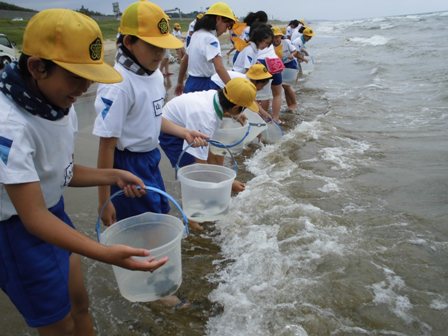 7月6日(水)に理科の魚の誕生や社会の水産業や総合の環境学習の一環としてヒラメ放流体験にいってきました。石川県水産総合センターのご協力を得て実現することができました。子供たちは、体長10センチほどのヒラメの稚魚がたくましく大海原に飛び出していく瞬間に出会えたことで、魚料理を食べるときに命の大切さを考えて食べることにつながればと思います。