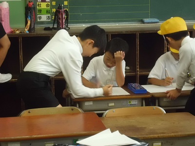 運動会後から始まった宿泊体験学習の準備も大詰めを迎えました。今週は、みんなの世界に一つだけのしおり作りをしました。子どもたちは、様々な場面で話し合い、分担し、協力してみんなに説明しようと一生懸命に準備をしていました。自分たちで決めたスローガン”自ら考えて行動し、6年生につながる合宿にしよう”に向けて頑張っています。来週には、施設の方が来校され、出前授業が行われたらいよいよ出発です。一生に一度の5年生の合宿が楽しく、成長のあるものにしていけたらと思います。楽しみです!!