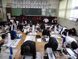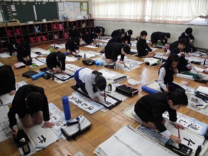 「1年の計は元旦にあり」ということで、書き初め大会が行われました。どのクラスも落ち着いた雰囲気で真剣に取り組んでいました。今学期にかけるみんなの意気込みを感じました。さらにどのクラスの作品も力作ばかりです。12日まで展示していますので、ぜひ、ご覧下さい。