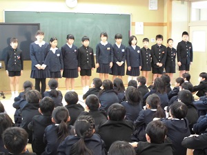 本日、長縄集会が開催されました。5年生の目標回数は100回でした。12月後半から取り組み始めた大縄練習でしたが、どのクラスのどのグループも練習よりも良い結果を残すことができました。やはり、”日頃から”一生懸命に取り組むと成果として表れるということが実感できたように思います。また、高学年として、大会の運営にも一役買って、大活躍していました。6年生に頼りっぱなしではなく、自分の仕事をまずしっかりこなすということができていたのはとてもかっこよかったです。校長先生にもその活躍ぶりを最後に褒めていただきました。これからの1ヵ月は6年生を送る会に向けて学校の中心になる5年生!今日の頑張りを最大限に活かして立派な最高学年への足がかりにしてほしいと思います。
