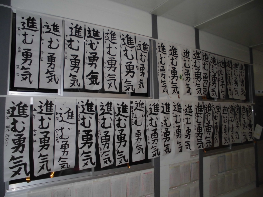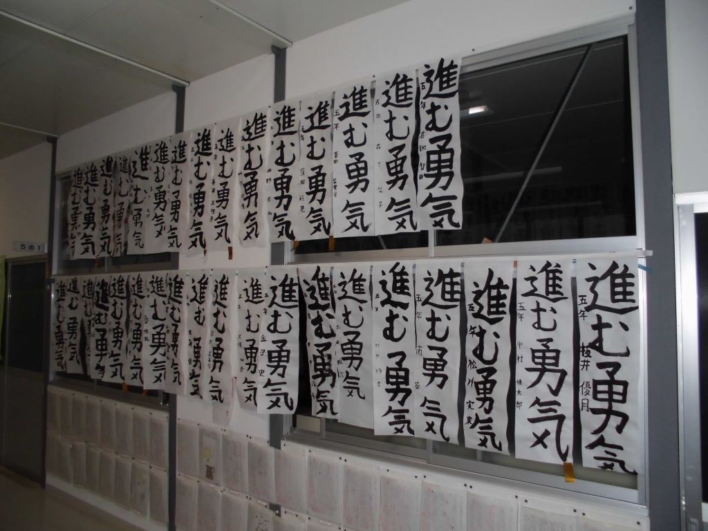 書き初め大会がありました。廊下に掲示してありますので見に来て下さい!