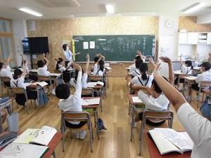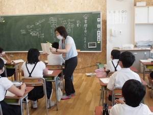 国語の「図書館を使いこなそう」という単元の学習で、司書の荒山先生に図書館のお話をしていただきました。日本十進分類法のことをクイズを交えながらわかりやすく教えてくださいました。また、5年生にぜひおすすめしたい本も紹介してくださり、とてもすてきな時間となりました。