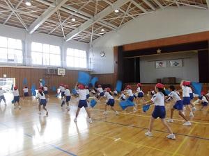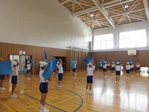 今年はフラッグを活用して演技します!6年生に教えてもらいながら