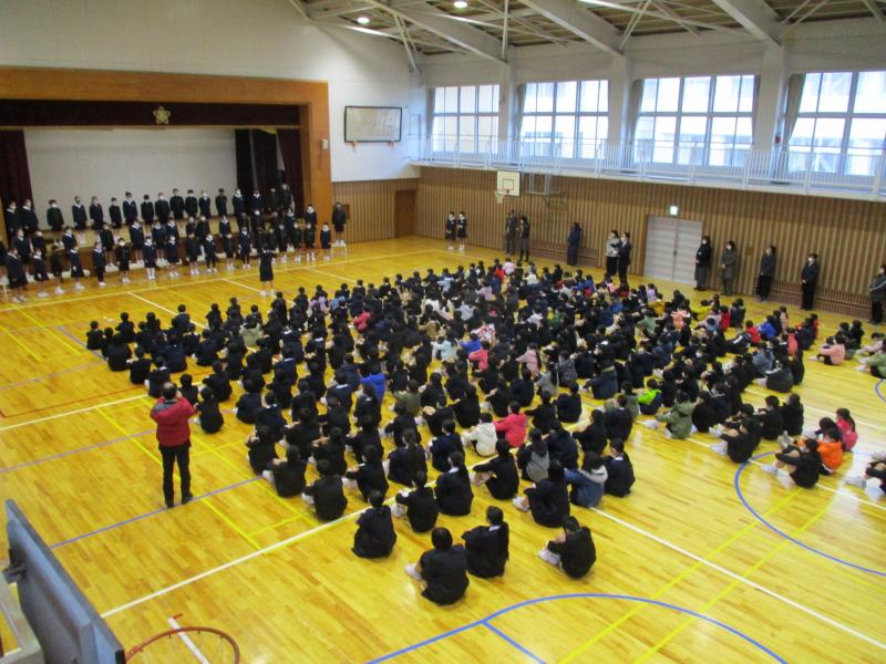 とても寒く、朝早い時間帯ということもあり厳しい条件が重なりましたが、本番では美しい歌声が体育館に響き渡り、他学年からは「とてもきれいだった」「1つにまとまっていた」とうれしい感想ももらえました。