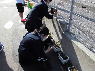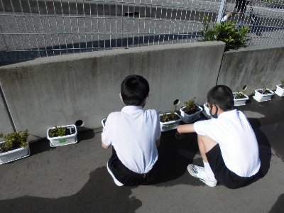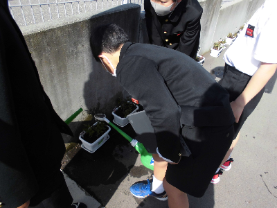 登校したらすぐに水やりをしたり、様子を見に行ったりするなど、愛情をもってお世話しています。