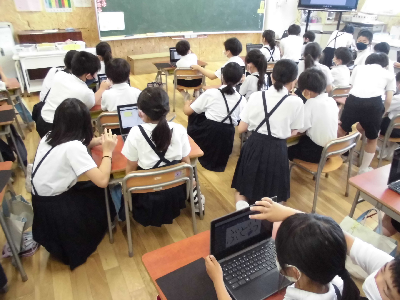 色んな機能の中の「オクリンク」の使い方について、2年生の教室に行き一緒に学習しました。