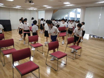 新6年生として、何かできることはないかと考え、5年生みんなで保護者説明会の会場設営を行いました。