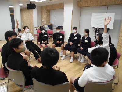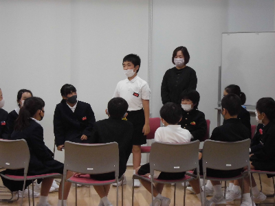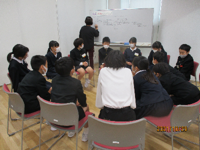 市共通道徳の一環として、今日は哲学館の専門員の方が来校し「哲学対話」を行いました。