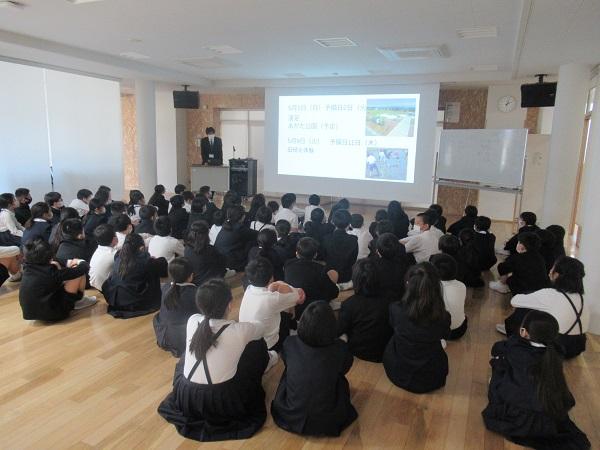 今日は学年集会を行い,5年生として頑張ることや,一年間の行事でどんな役割があるのかなど話をしました。