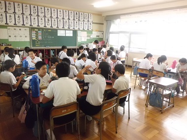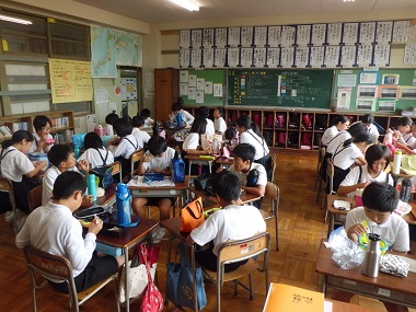 昨日の体育大会の予備日のため、今日も弁当でした。子どもたちは嬉しそうに弁当を食べていました。