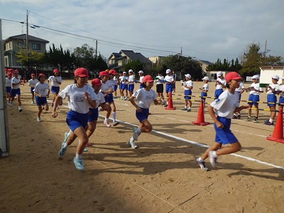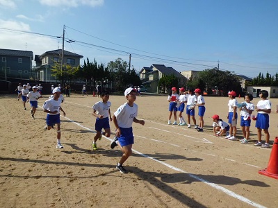 今回のマラソン大会は、いしかわっこ駅伝に出場する選手が休み時間の練習で全校児童を引っ張ってくれました。駅伝選手がハイペースで走ることで、全校児童も負けじと走っている様子でした。