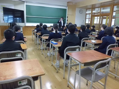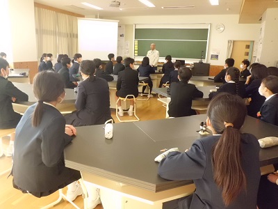 今日は5限目にGT(ゲストティーチャー)として、かほく市で宅配寿司「鮨舟」を経営している谷さんのお話を伺いました。