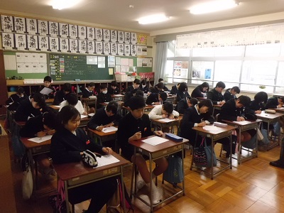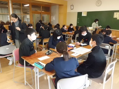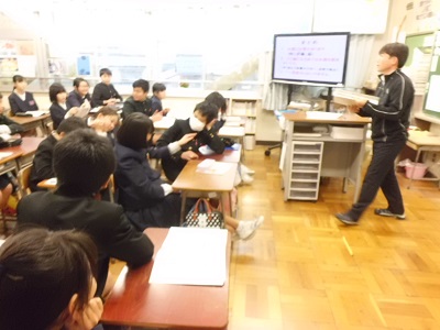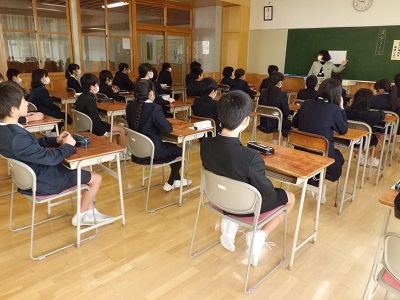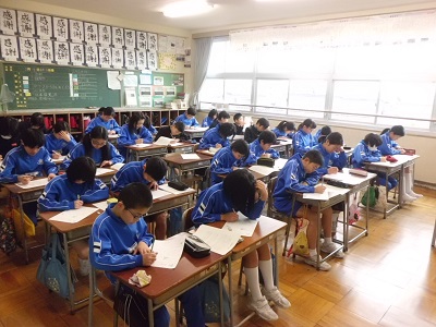 今日は河北台中学校の体験入学に行ってきました。午前中は授業体験をさせてもらい、楽しく授業に参加していました。子ども向けの入学説明会では、小学生のうちにつけておいてほしい力を説明していただきました。「挨拶、姿勢、基本的な生活習慣など、あたりまえにできてほしいけど、これが難しいんですよね。」「易きに流されず厳しいところに自分をおいて成長してほしい。」など、お話いただきました。子どもたちにはその意味をしっかり考えて残りの日数を過ごしてほしいと思います。