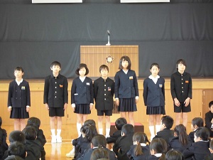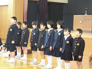 4月27日(水)に全校集会がありました。今回は、児童会のコーナーより、4先生以上の各クラスの学級代表と、各委員会の委員長の決意表明がありました。