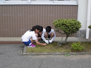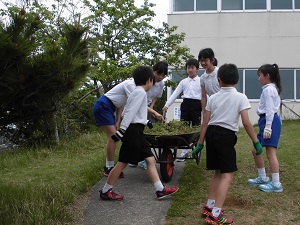 併せて、全校除草でも6年生が各学年の担当場所に配置され、スーパーサポーターして活躍していました。どの場所、どの学年の下級生とも一緒に、一生懸命に作業している姿は立派でした。