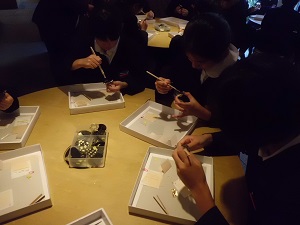 さて、本日は、金沢市中心街をグループであらかじめ決めたところに見学や体験にいくことをしました。午前は、今井金箔さんで金箔貼り体験と、21世紀美術館見学、午後からはグループごとに兼六園、金沢城公園、いしかわ歴史博物館、能楽美術館を周り、金沢の歴史と文化にふれあうことができました。見学途中のルールやマナーをまもり、あいさつもしっかりできていて、さすが6年生!という姿を見せてくれました。