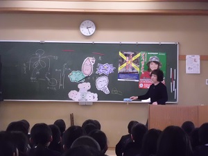 今日は、学校薬剤師の髙井先生による薬物防止教室が行われました。最近の体育では保健の学習で各クラスで学んだことと照らし合わせながら考える時間となりました。