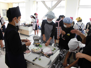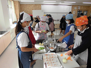 家庭科の調理実習で野菜炒めとスクランブルエッグを作りました。それぞれのグループで1品加えて、アレンジしたメニューが見られ、楽しかったです。料理の大変さを実感した子達も多かったのではないでしょうか。是非おうちでもお手伝いしてほしいものです。