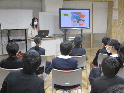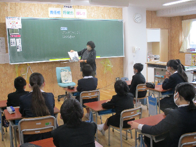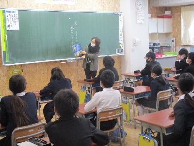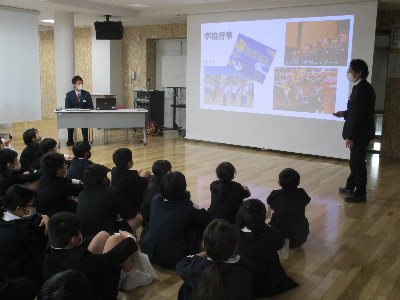 本日10日(木)は、河北台中学校の先生が来校され、中学校生活についての説明会がありました。
