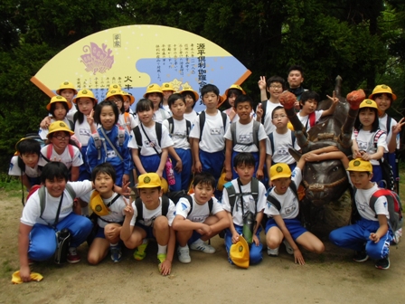 今日、倶利伽羅公園に行ってきました。火牛の像と一緒に記念撮影。長い坂道を登ったので、へとへとでした?!
