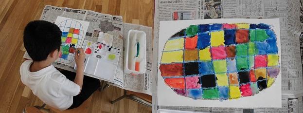 たまごの模様を考えたり,たまごをどんな色で塗ろうか考えたりしながら作品をしあげることができました。