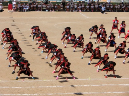 今日の1限は何とか曇り空だったので、ラッキーだった中学年。運動場でソーランの仕上げに余念がありませんでした。「もっと低く」、「列を揃えて」の檄が飛んでいました!