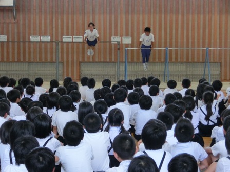 4年生の皆さん、この1ヶ月よく頑張りました。緊張で練習通りに行かなかった人も、上手くいった人も様々いるでしょう。しかし大切なのは、色々なことにチャレンジすることです。自分なりに一生懸命努力することです。演技の時には誰も助けてはくれません。自分でやりきったことが素晴らしい経験となるのだと思います。努力して一生懸命やりきった今回の経験を、これからの生活に生かして下さい。今後がますます楽しみな4年生ですね。