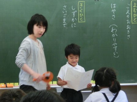 6月5日(月)の午後、西田幾多郎記念哲学館で県学童話し方大会が開催されます。本校からは3年生の西田さんが代表として大会に参加します。学年代表である西田さんを応援しようと、今日、学年リハーサル会が行われました。「体育館中に響く声で言っているのがすごくいい」「全部覚えて話しているのがすごい」「自分はあったことだけ書いたけど、西田さんは自分の思ったことを言っているのがいい」等、たくさんのことを褒めてもらいました。とっても上手でした!明日は、全学年の前でリハーサル、そして月曜日には本番です。自分の夢について、堂々と発表してきて欲しいです。頑張れ!