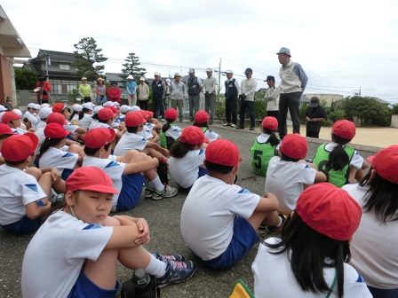 開会式:激励の言葉、ルールの説明、教えて下さる地域の方々の紹介など
