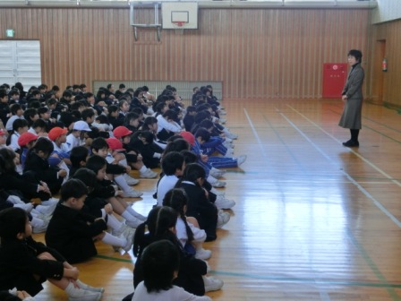 今日の長休みに、避難訓練が行われました。今回は11月以来となる長休みの訓練でした(児童がばらばらなところにいる、今日あることは知らない)。緊急地震速報が鳴り、様々な場所で職員室からの指示を聞き、体育館に避難します。お天気が良かったので外で遊ぶ低学年の子も多かったのですが、長靴を履いたまま上手に体育館に避難してきました。どの子も真剣に取り組むことができました。