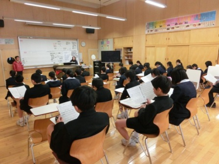 オリエンテーションの後は、クラス毎に授業体験。2組の音楽の様子