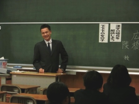 6年2組の国語 まずは自分の名前を黒板に書いてもらった広橋先生。楽しい導入でした。