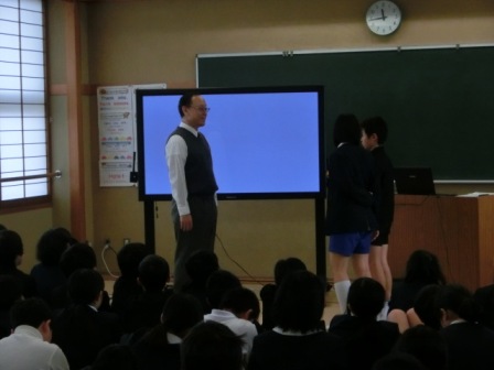 昨日の3限、6年生を対象とした講演会が行われました。金城短期大学部教授、金城大学国際交流センター長の能雄司(のうゆうじ)先生をお招きましました。能先生は昨年度の市P大会の教育講演会の講師でした。金城高校(現遊学館高校)で体育や国語を担当され、現在は大学のビジネス学科で学生さんの授業を行ったり、国際交流センターで留学生の生活指導等もされたりしています。中学校目前の子どもたちに、広い視野で様々なお話が聞けると思い、講演等でお忙しい方ですが、何とか実現できた会でした。