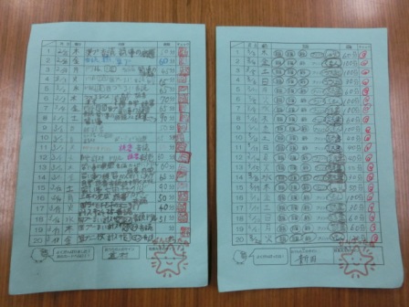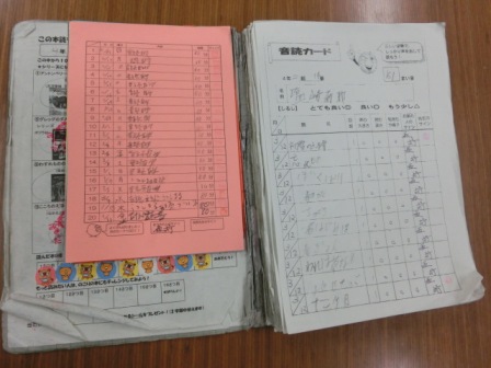 ところで、その家庭学習のカードを音読カードの横に貼って無くさないで蓄積している学年があります。その中でも、素晴らしいものがあったので紹介します。これこそ、努力の証し、毎日学校に持ってくるのも重いでしょうに・・・。とにかく素晴らしいです!