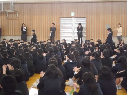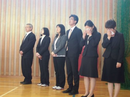 卒業した6年生も来てくれました。ありがとう。出会いと別れ・・・今は、寂しい気持ちで一杯です。先生方には外小の子どもたちのために、一生懸命、力を尽くしていただきました。ありがとうございました。新しい学校でのご活躍をお祈りしています。子どもたちには、「出会いと別れ」の中から「出会いを大切にする心」「別れを惜しむ心」、「人との繋がりの中で自分たちは成長しているのだ」ということを感じ取って欲しいと思います。