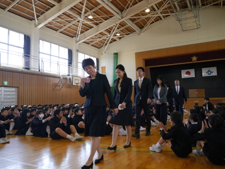 異動の先生方から、子どもたちに思いを伝えていただきました。