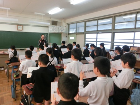 4年生は音読スキルを先生のリズムに合わせて、読んでいました。男女別や列ごと?に、バリエーションもあって、楽しそうでした。4年生教室の声は、1階職員室によく響いてきます。気持ちのよい朝が迎えられます。