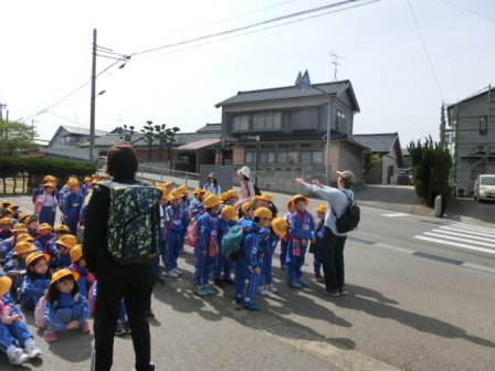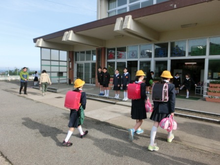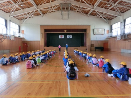 以前の週間予想では雨予報だった今日ですが、遠足日和となり、子どもたちは元気にうれしそうに出発しました。出発式の様子を紹介します。