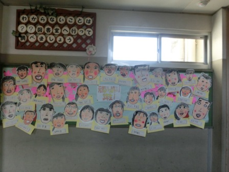 授業参観に向けて、図工で取り組んだ「自分の顔」の絵が、多くのクラスの廊下や掲示板に飾られていました。とてもよく描けていました。表情が素敵です。学年らしさも出ていましたね。