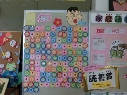 これは昨年度から取り組んでいる家庭学習の取組状況を表した「努力の花」です。昨年度より頑張っている子が多く、順調なスタートです。黄色カードが今一番はやい子です。