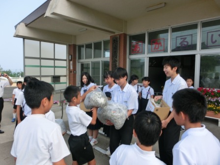 6月22日(水)に河中の生徒会3年生が、プルタブ集め&挨拶運動に来てくれました。事前に募集チラシをいただいていたので、全校に配付してありました。たくさんの子が持ってきてくれました。持たせて下さった保護者の皆様、ありがとうございました。今年素晴らしかったのは、6年生が昨年度、総合でエコを学習したときに、継続的にプルタブを集めていたので、大量のプルタブを、河中に渡すことができたことです。すごい量に驚き、また喜んでくれました。小中連携の一つの取組です。朝からとても素敵な触れ合いや笑顔が見られ、来年に向け、また協力できたらよいと思いました。お家にあったら、いつでも学校に持たせて下さい。今後も6年生が部活動体験に行く等、小中連携事業はまだまだ多くの機会がありますので、その時、河中へ届けたいと思います。